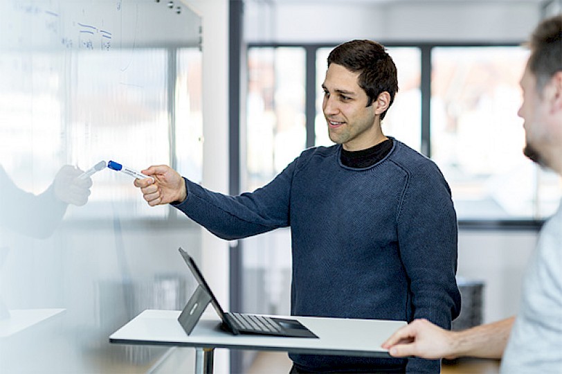 Wir betonen, dass alle Teilnehmenden tatsächlich eigene Erfahrungen in unserer Software machen können. Die Schulung ist außerordentlich praxisnah ausgelegt und ein virtuelles Mikado System wird zur Verfügung gestellt, sodass eigenständig die verschiedenen Programmieraufgaben umgesetzt werden können. Lediglich der eigene Laptop mit einem funktionierenden Browser gilt als Voraussetzung, alles weitere stellen wir. Gern sind alle Teilnehmenden auch dazu angehalten eigene Testteile mitzubringen, damit wir diese live vor Ort testen können. Es stehen live Bin-Picking-Stationen für verschiedene Tests und Demos zur Verfügung.